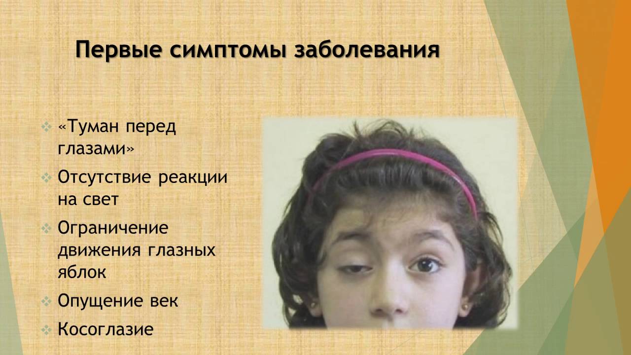 В случае, если заболевание начинается с поражения нервов, отвечающих за иннервацию мышц зрительного анализатора, то больной предъявляет жалобы на: